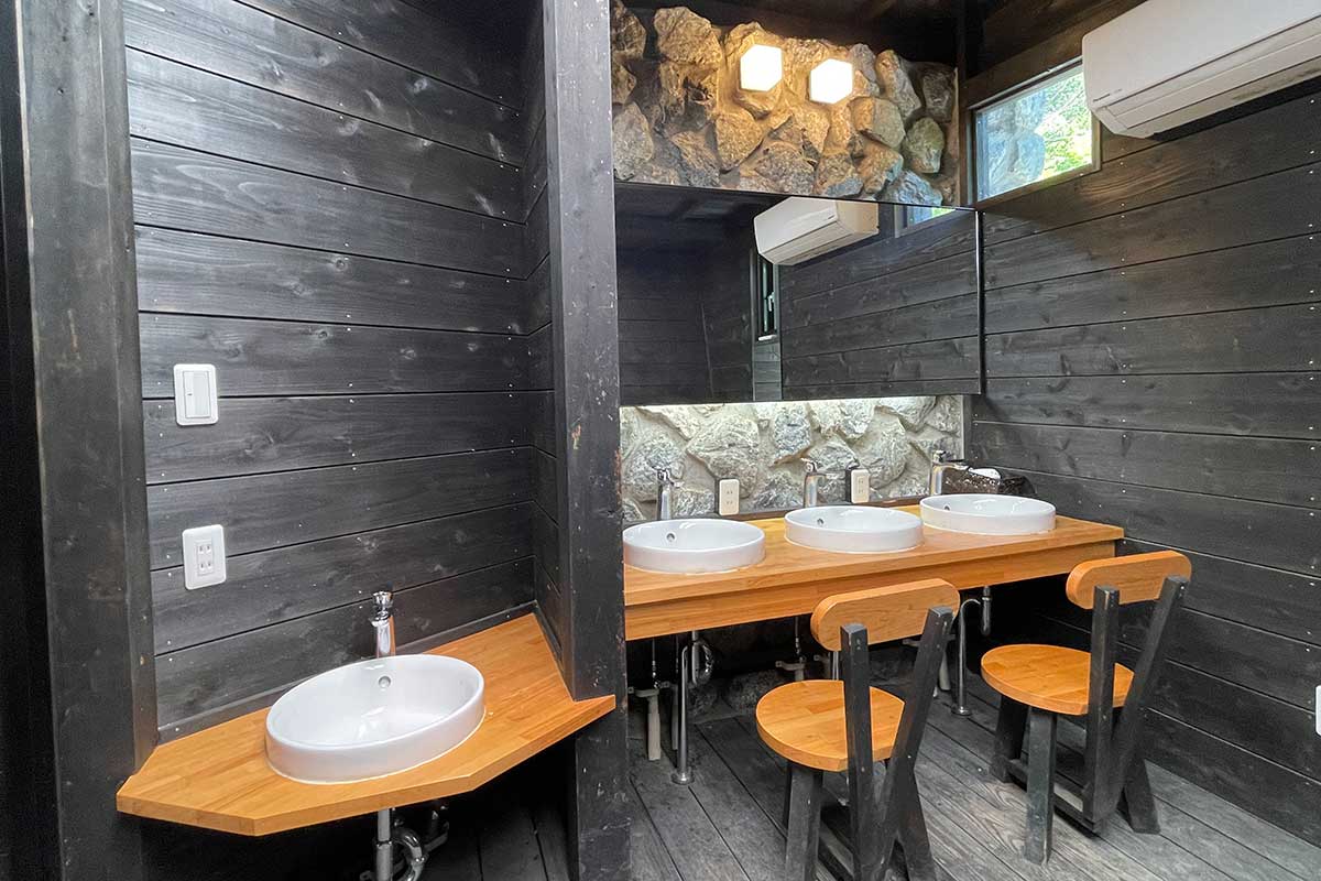 室内にはトイレ、ミニシンク、鏡付き手洗いも付き快適度はウッドルーフ中最高です。