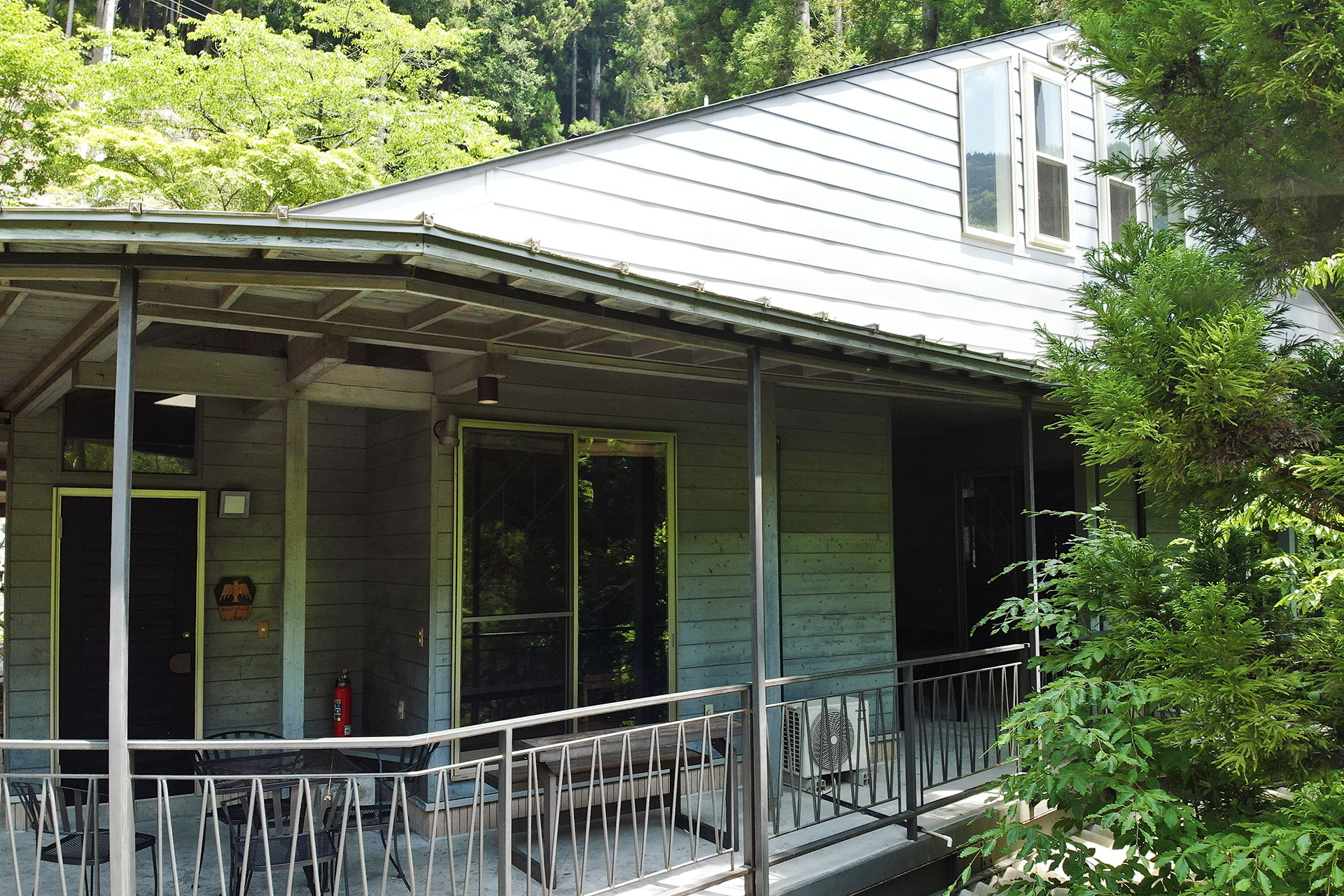 荒川を見下ろす全室リバービュー、絶好のロケーションに建つバンガロー「TULALA」。テラスは屋根付きで、雨の日もバーベキューOKです。